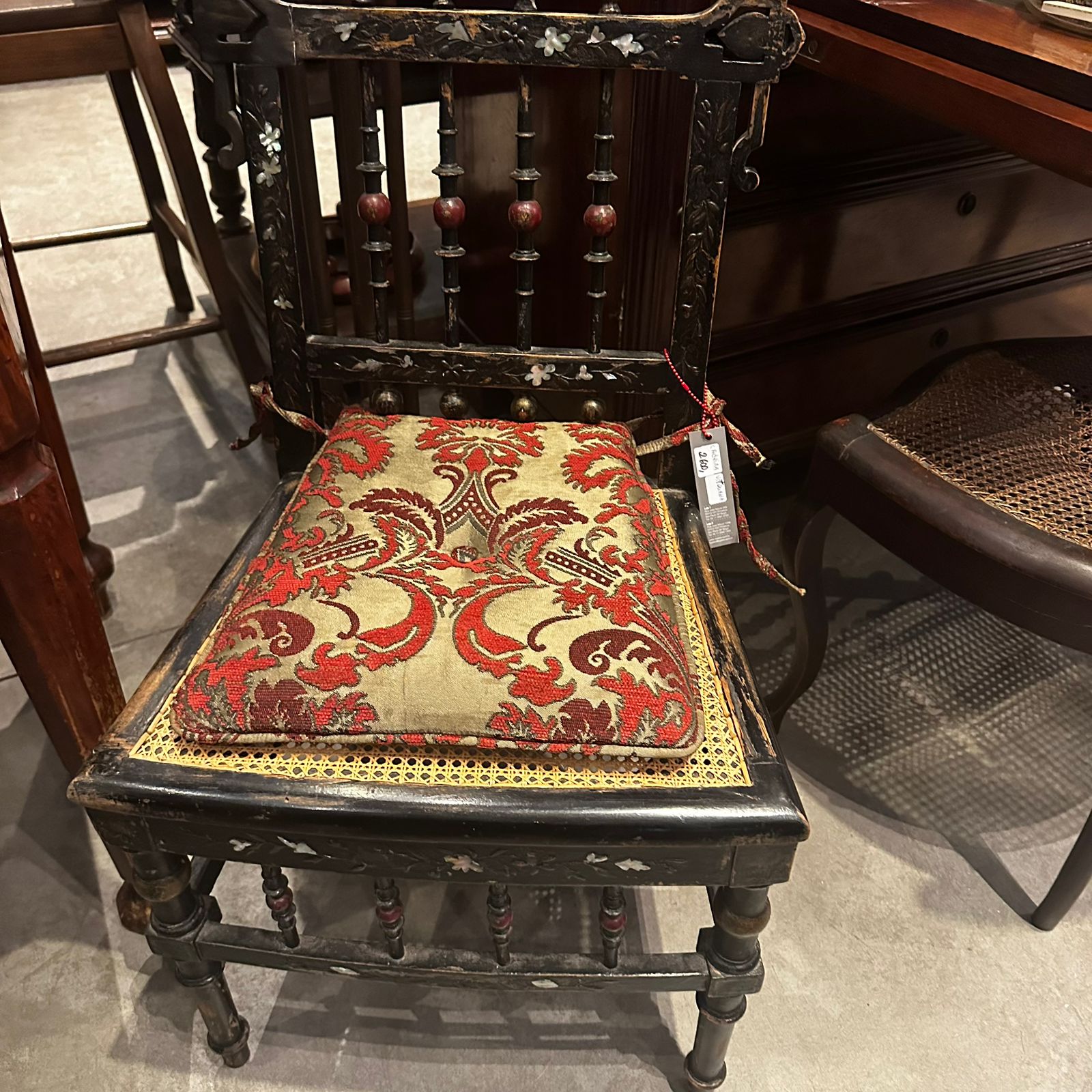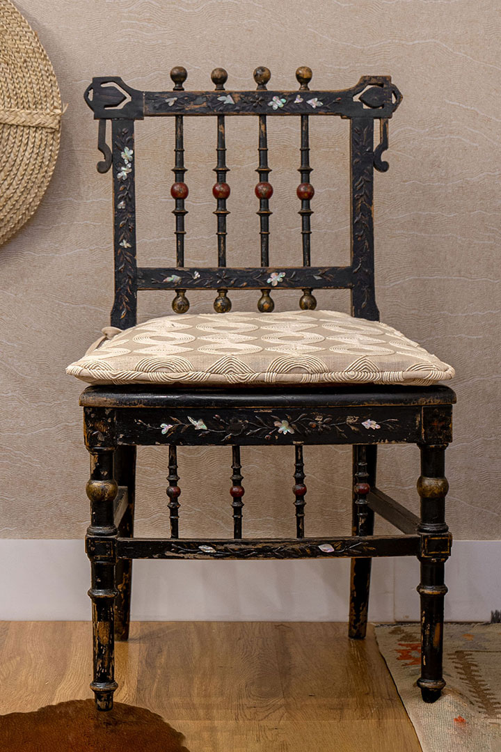 Com mais de 150 anos de história, essa autêntica peça da era Vitoriana carrega nas curvas a elegância da madeira escura trabalhada à mão, os detalhes entalhados em alto-relevo e um requinte raro: madre-pérola incrustada, como pequenos fragmentos de luz que resistiram ao tempo.