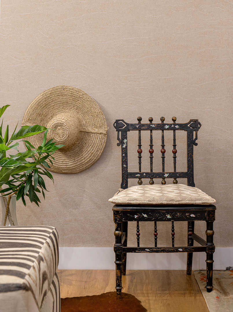 Encontrada em um antiquário discreto no coração de São Paulo, essa cadeira nos escolheu antes mesmo que soubéssemos. Em meio a pilhas de objetos do tempo, ela repousava ali, intacta, imponente, silenciosa, como quem esperava por um novo olhar.